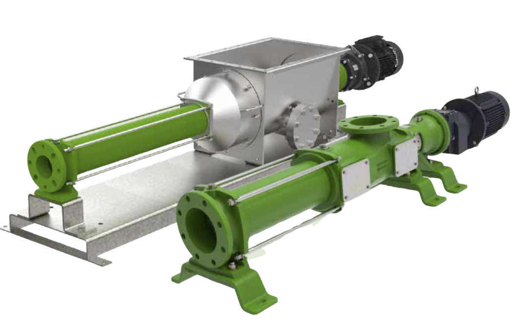 Dette er en av de mest brukte pumpetypene i industrielle prosesser der det er behov for stabil transport av tyktflytende og avvannede medier. Eksenterskrue pumper med stor innmatningstrakt og integrert mateskrue sørger for jevn og driftssikker tilførsel av væske til de hydrauliske delene. Den store diameteren og de kraftige skruebladene reduserer risikoen for brodannelse og sikrer kontinuerlig flyt av mediet.